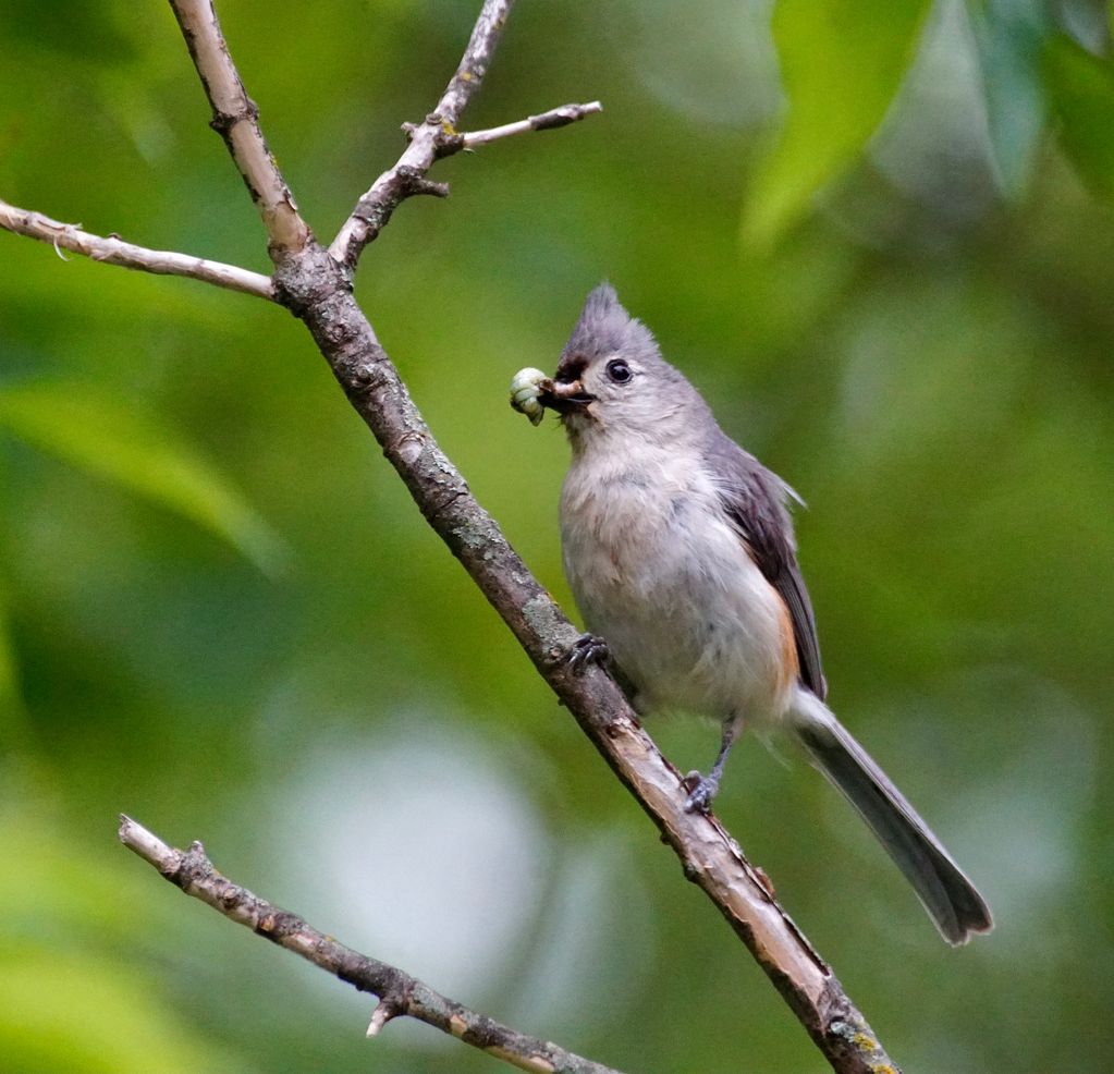 Look for Tufted Titmice flitting through the outer branches of tree canopies in deciduous woods, parks, and backyards. A quiet walk through woodlands will often turn up the twittering of a mixed-species foraging flock, and you’ll likely find titmice in attendance. You’ll often hear the high, whistled peter-peter-peter song well before you see the bird.