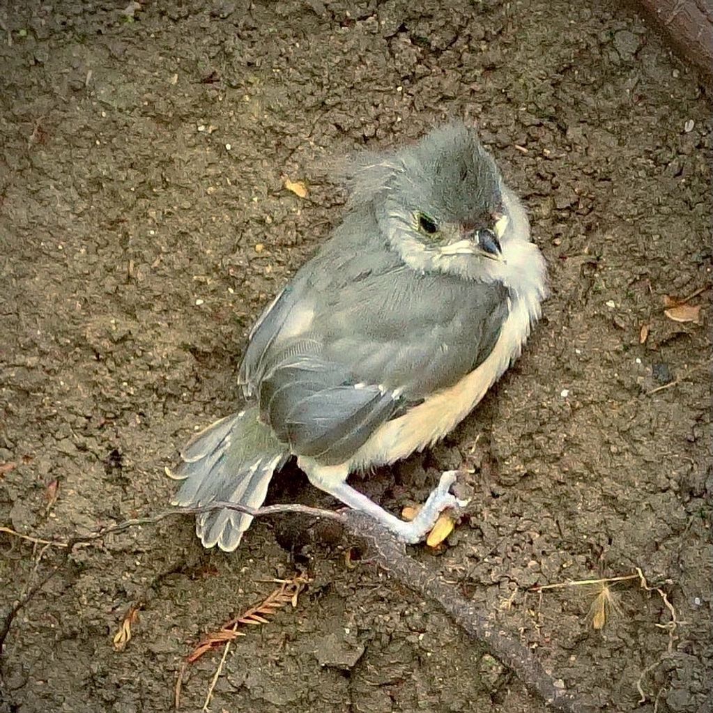 This was one of the babies after jumping from the nest and landing in an embankment below, checking out the new scenery.